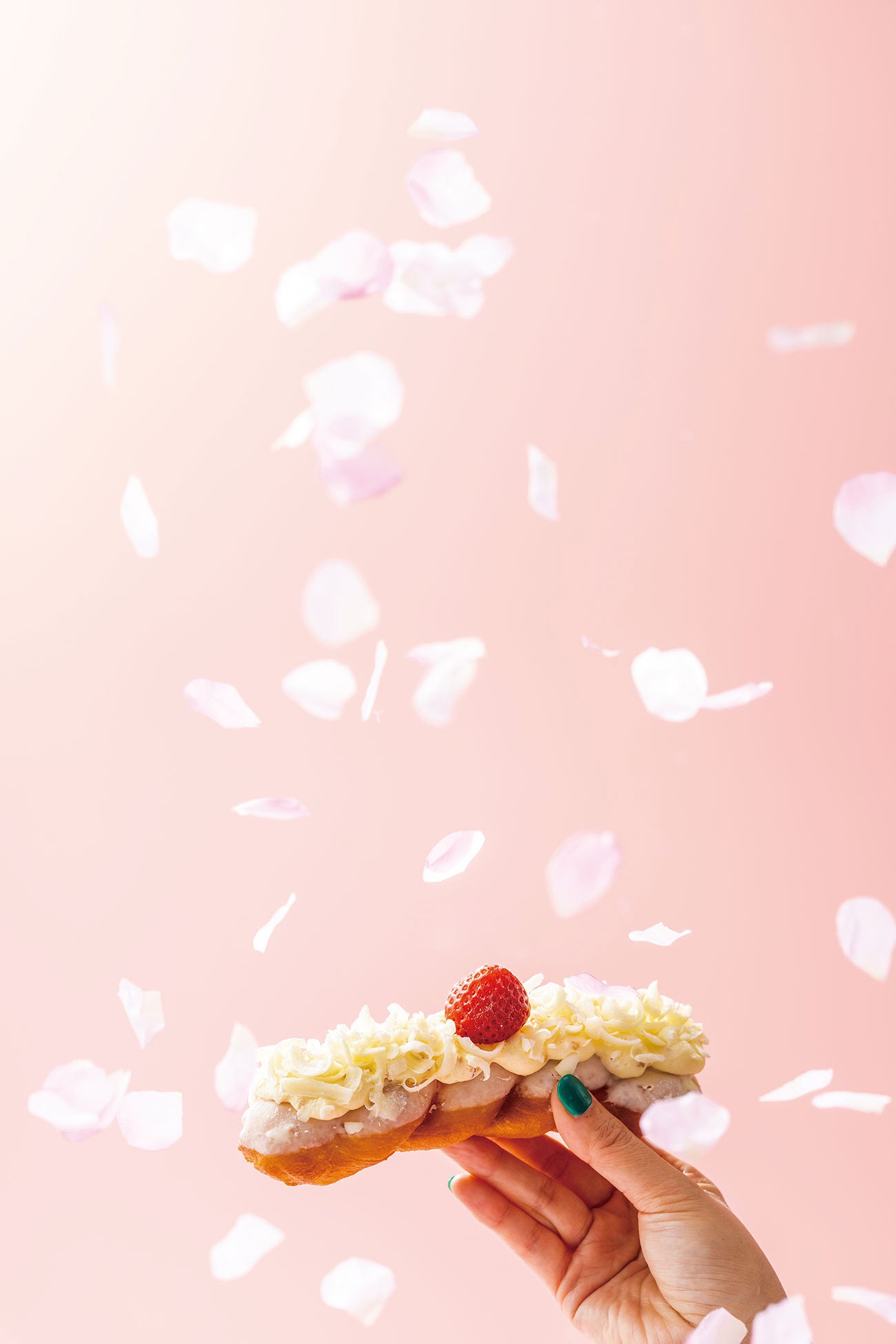 いちごの甘酸っぱさと桜のやさしい香りが広がる、まさに“春咲く”ドーナツです。