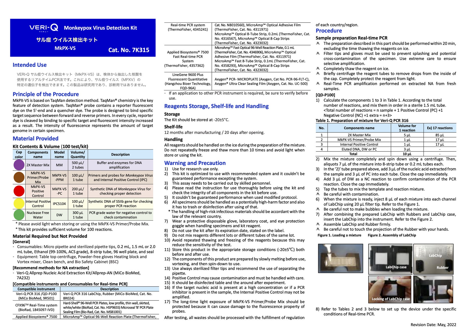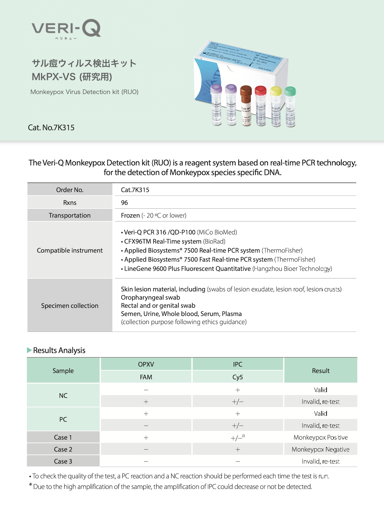 サル痘ウイルス検出キット VERI-Q (ベリキュー) MkPX-VS (研究用)の発売のお知らせ