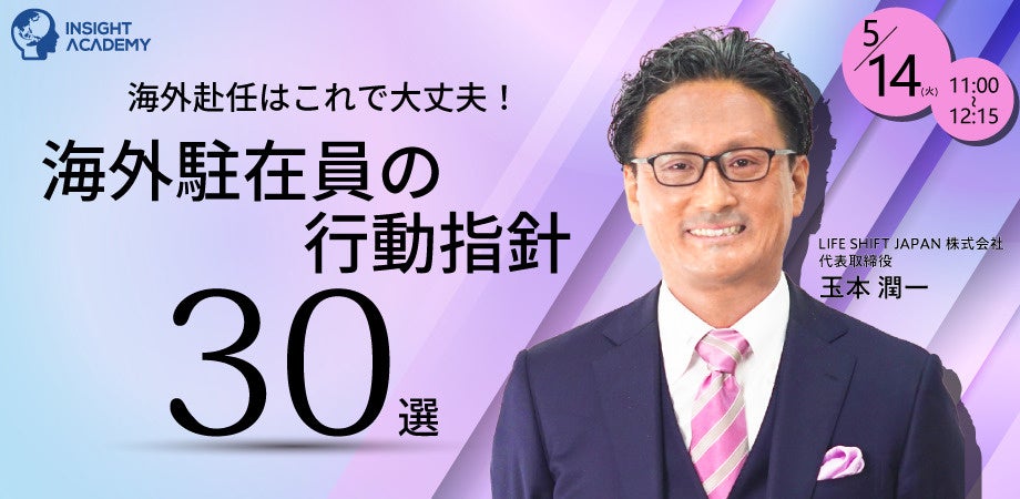 グローバル⼈材育成・研修業を⼿掛けるインサイトアカデミー株式会社(本社:東京都港区新橋、代表:金 珍燮)は、無料webセミナー「海外赴任はこれで大丈夫!海外駐在員の行動指針30選」を2024年5月14日(火)11:00より開催します。