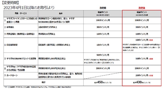 株式会社ヤマダ デンキ (本社:群馬県高崎市、代表取締役社長上野善紀、以下,ヤマダデンキ )を通じて提供しているヤマダNEOBANKにおいて、毎月のご利用状況に応じてヤマダポイントを進呈する「 ポイントプログラム」 を2023年4月1日より一部改定いたします。