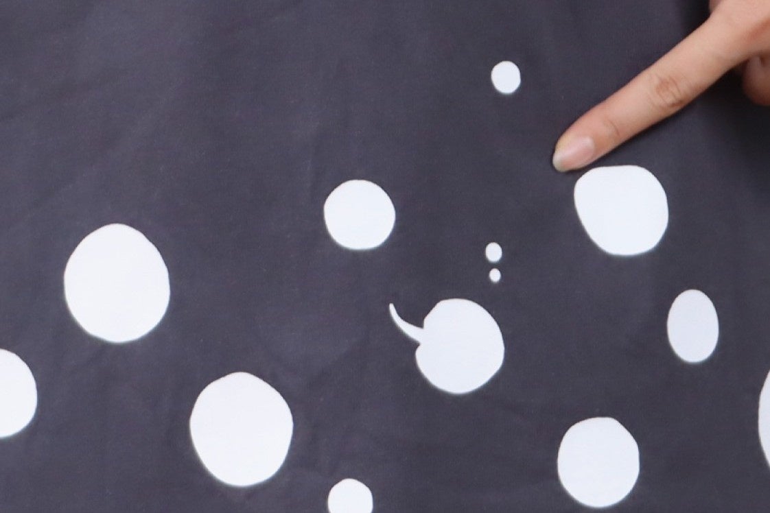 制服と同様に、エイが隠れた遊び心のあるデザインがポイント。
