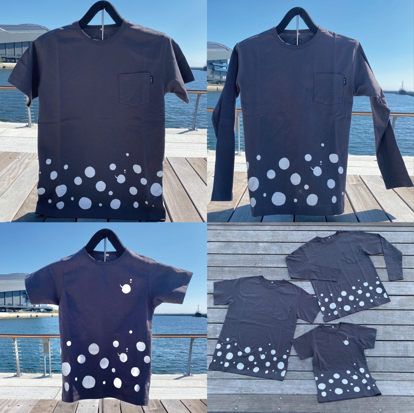 ユニセックスで着られるシルエットで、大人サイズには便利な胸ポケットが付いています!半袖・長袖・キッズサイズをご用意しており、親子でお揃いのコーディネートも楽しめる1枚です。素材は綿100%のやわらかな生地を採用し、着心地の良さにもこだわりました。