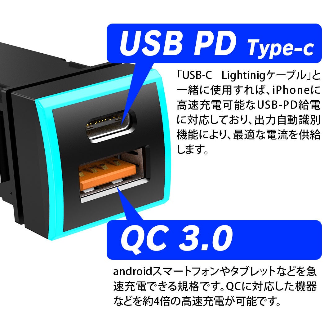 空いているスイッチパネルに取り付けるので純正パーツのような仕上がりとなります。iPhone/iPad/Android/IQOS等のあらゆるUSB機器をフルスピード充電が可能な車載充電器です。