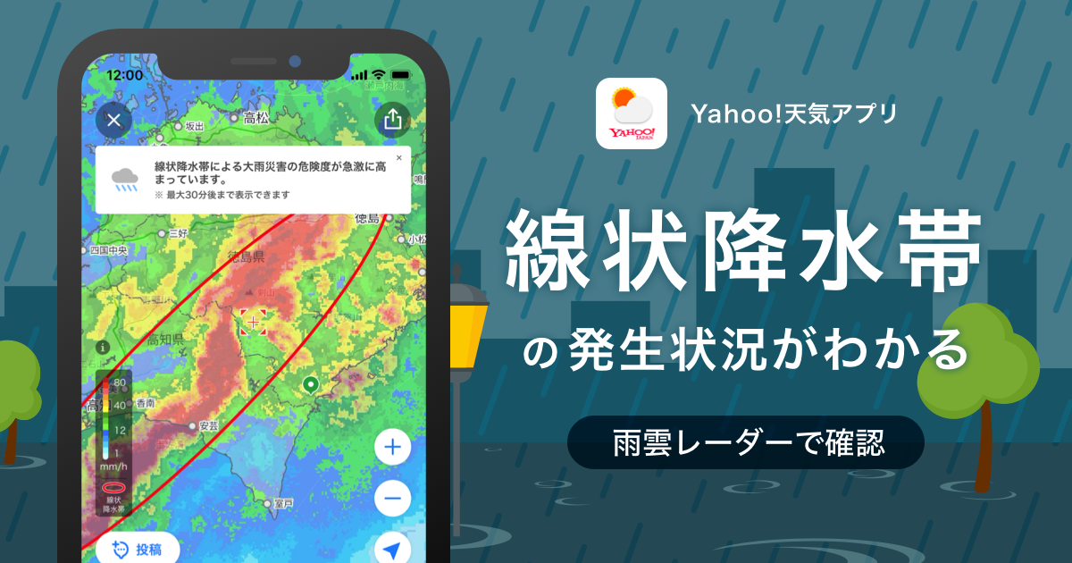 ヤフー株式会社(以下、Yahoo! JAPAN)が提供する「Yahoo!天気」アプリ(iOS版)は本日、「雨雲レーダー」に線状降水帯の有無や推移などの発生状況が視覚的にわかる機能(以下、本機能)を追加しました。なお、本機能は、2023年7月に先行してAndroid版での提供を開始(※1)しており、ユーザーからも高い評価を得ています。