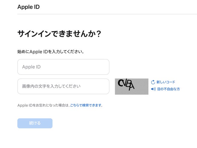 間違ったApple IDを入力すると、Apple IDへサインインできません。入力内容を確認して、正しく入力し直してください。