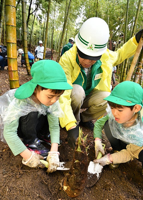 高槻市内の園児たちが春の味覚タケノコ掘りを楽しむ