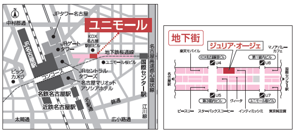 お仕事帰りやお買い物のついでに「ジュリア・オージェ 名古屋ユニモール店」にぜひ、お立ち寄りください。