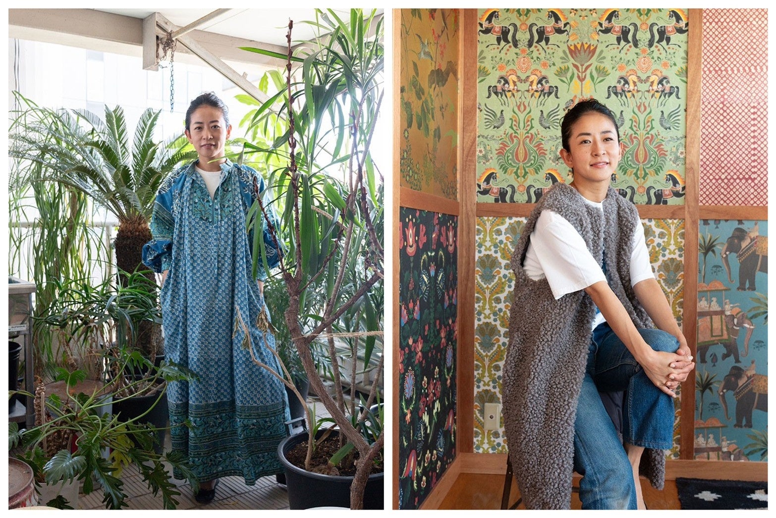 (左)インド木版スモックワンピース ¥16,720 tax in
