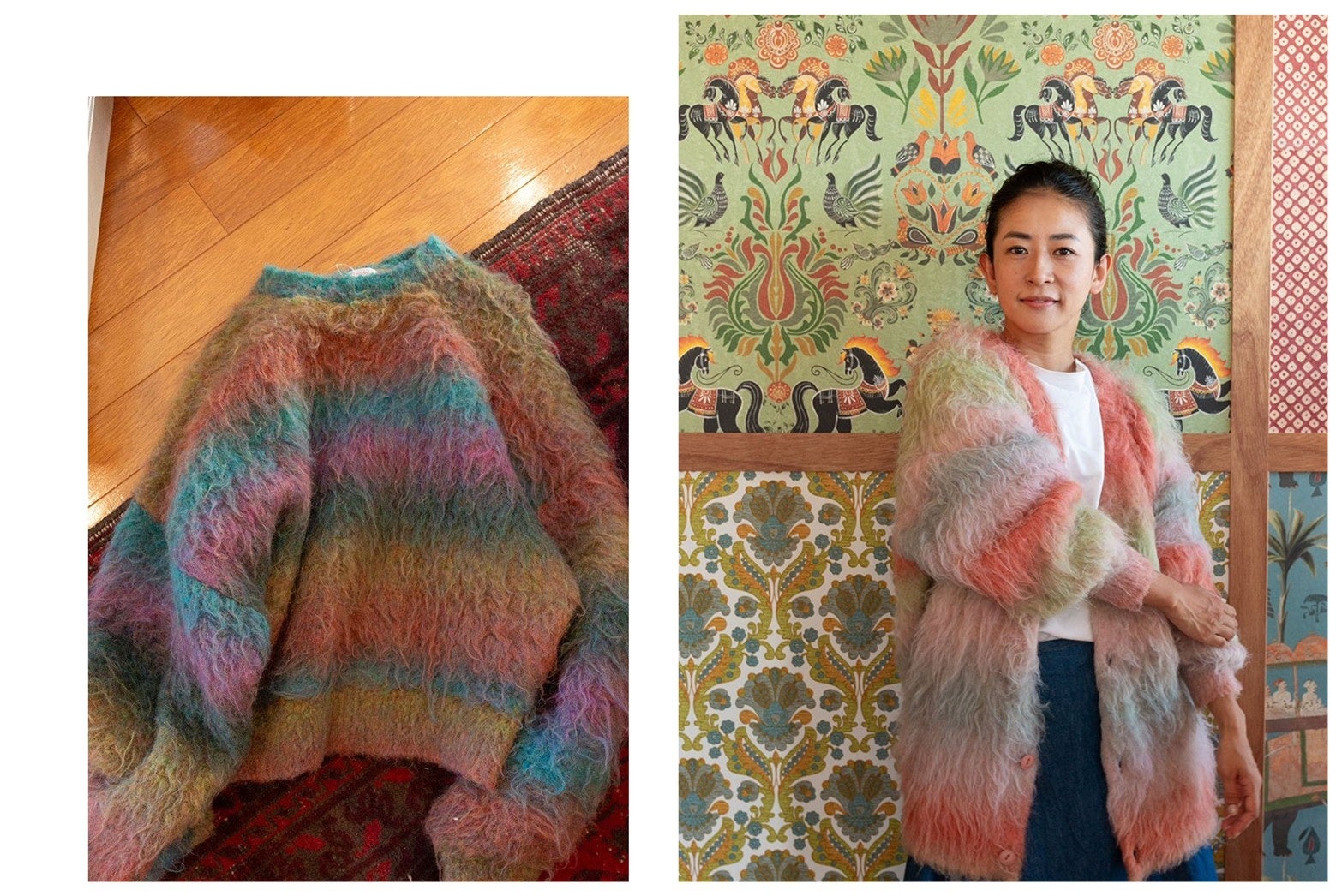 ニュアンスカラーでつくったプルオーバーとカーディガン。色が滲んだような絶妙な配色でボーダーにしました。