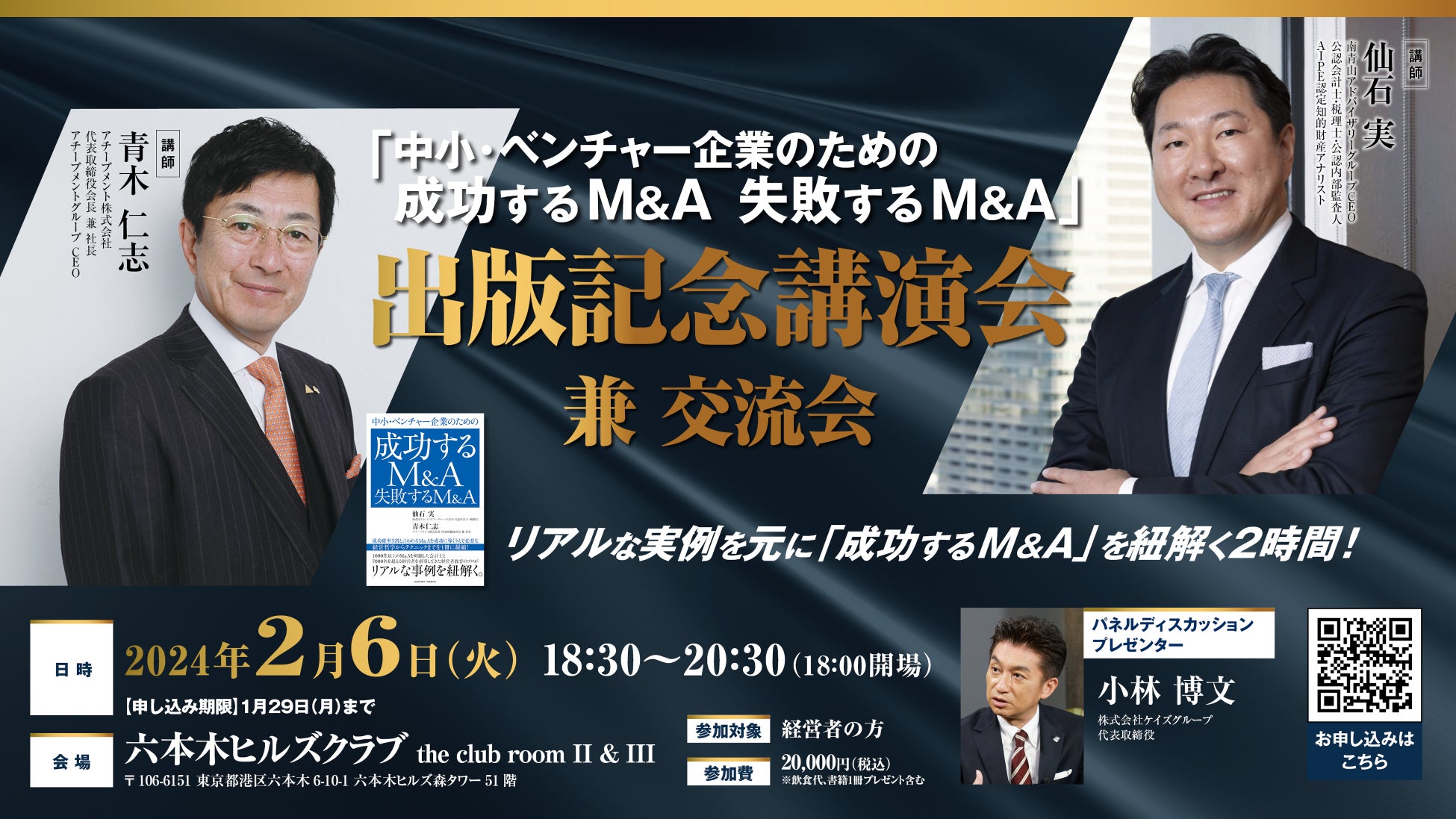 参加費:20,000円(税込/飲食代、書籍1冊プレゼント含む)