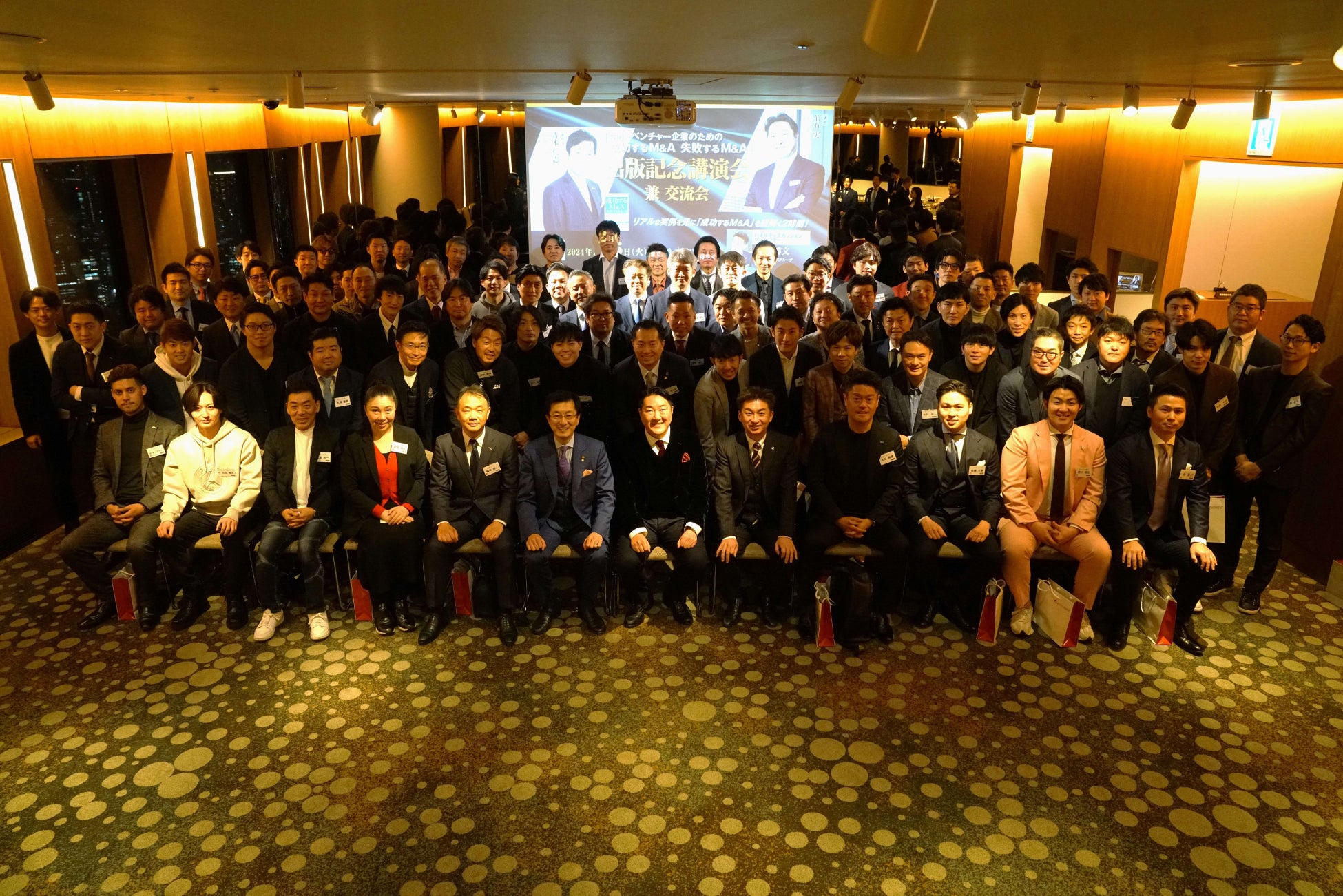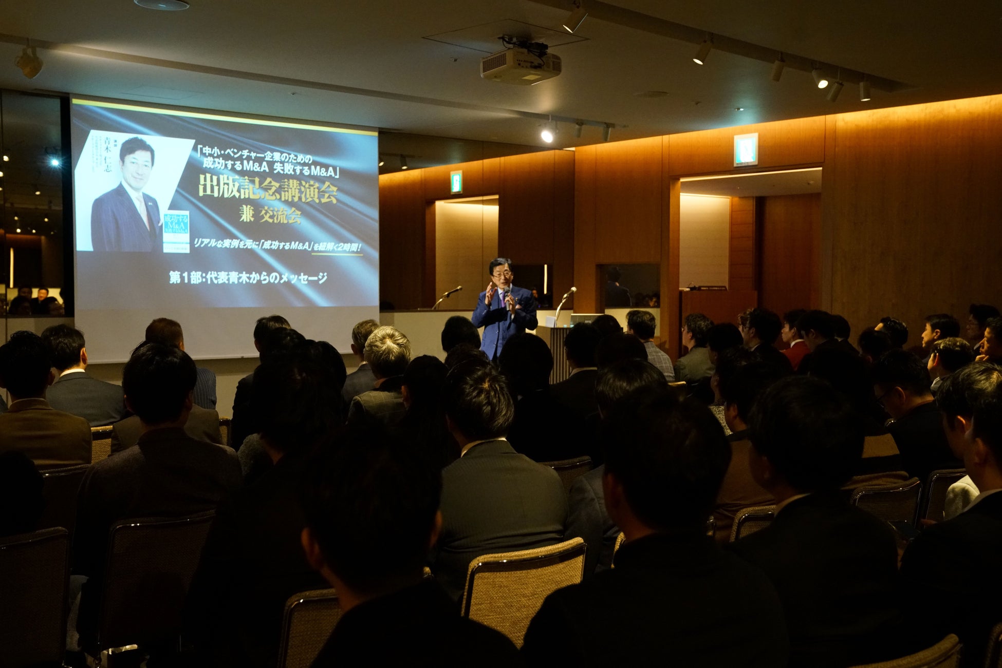 アチーブメント株式会社(東京都江東区)代表取締役会長 兼 社長 青木仁志、南青山アドバイザリーグループCEOの仙石実 氏の共著『中小・ベンチャー企業のための成功するM&A 失敗するM&A』の出版を記念した講演会兼交流会を、2月6日(木)に六本木ヒルズクラブにて開催いたしました。約90名の経営者が集まり、リアルな実例を元に「成功するM&A」の本質に触れました。講演会の後には交流会が開かれ、経営者の方々が最近のM&A市場について意見を交換する機会となりました。