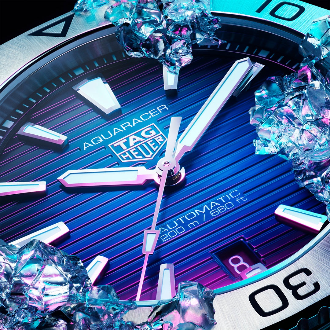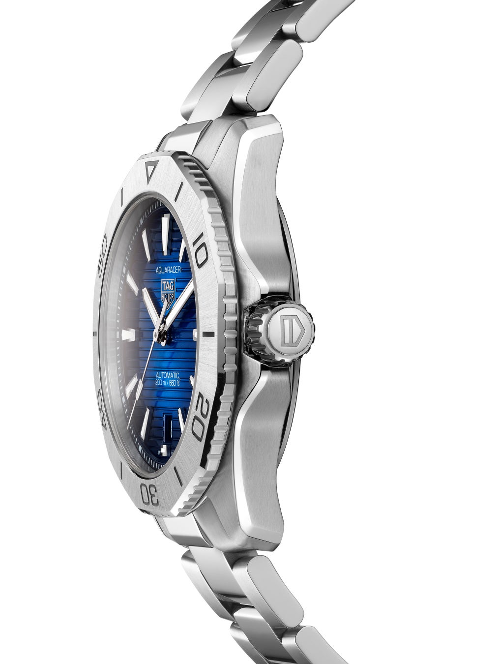 この新しいタイムピースは、あらゆる場面で洗練を極めています。今回発表される2つのモデルのうち、大きい方の直径は40㎜ 、厚さは11㎜で、前世代のモデルの直径41㎜、厚さ12㎜と比較すると、よりスリムでスマートなシルエットを実現しています。タグ・ホイヤーのデザインとエンジニアリングのチームは、アクアレーサーの本質は守りながら、より洗練されて耐久性のあるモデルを完成させたのです。