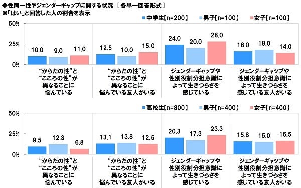 ◆「“からだの性”と“こころの性”が異なることに悩んでいる」中学生・高校生の10%