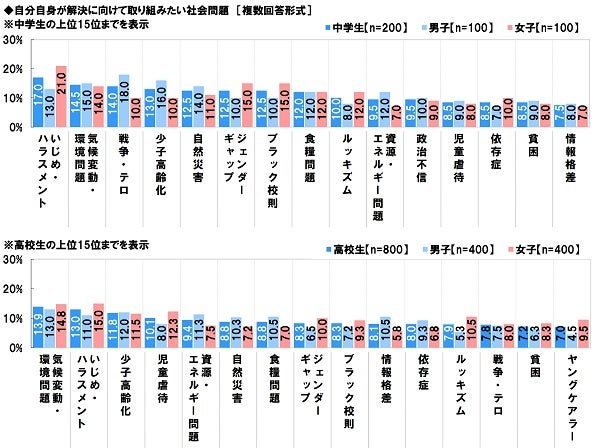 中学生1位は「いじめ・ハラスメント」、高校生1位は「気候変動・環境問題」