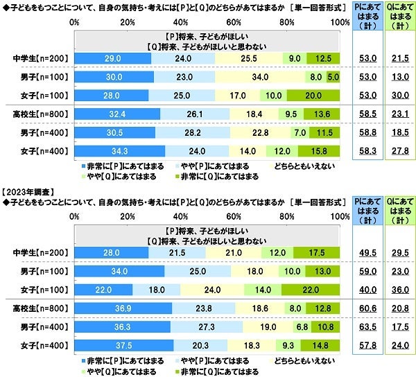 女子中学生の24%が「ずっと独身でいたい」、30%が「子どもをほしいと思わない」