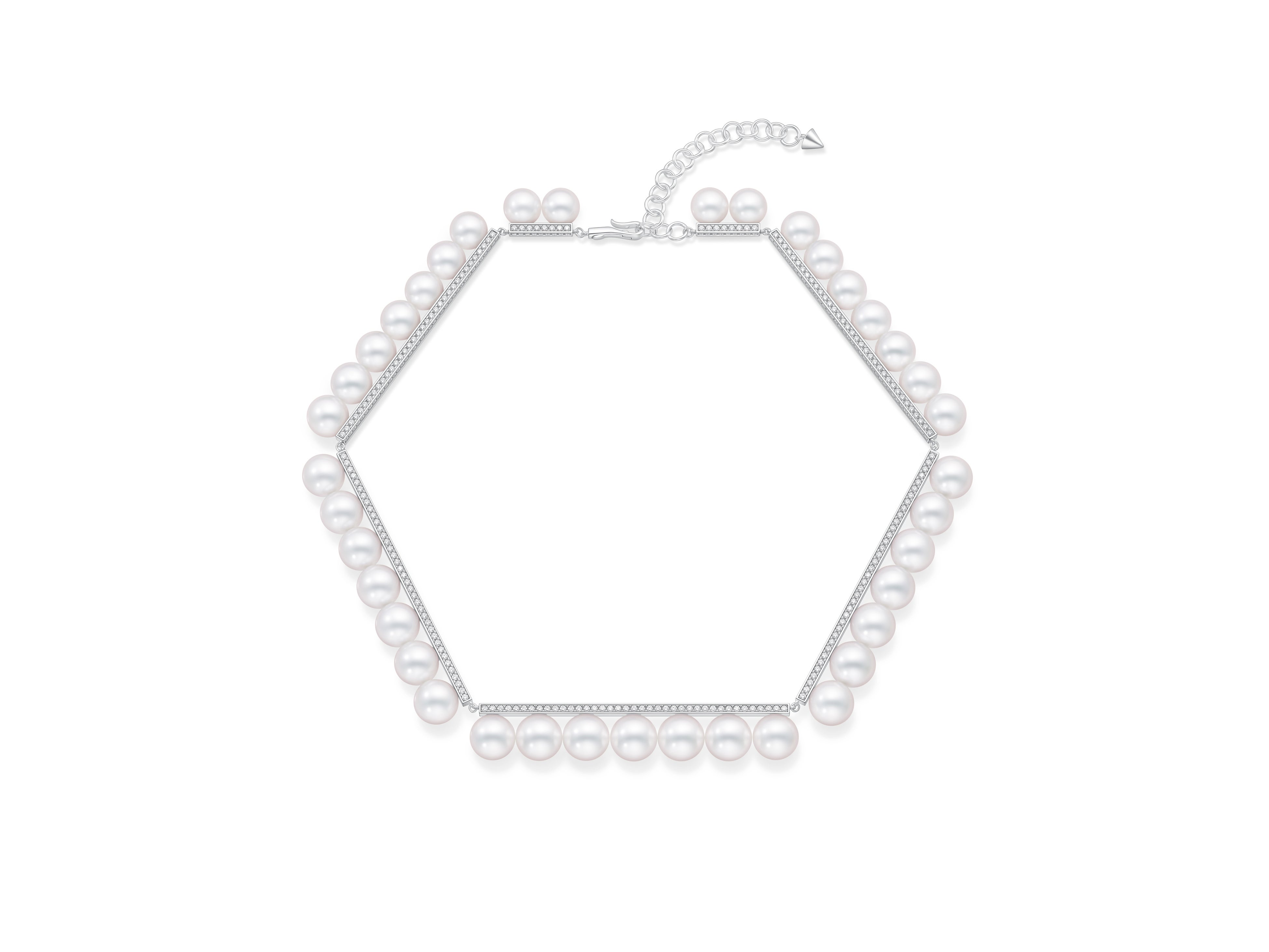 バランス パラレル ダイヤモンド パヴェ ネックレス[18K ホワイトゴールド、あこや真珠、ダイヤモンド]¥2,640,000