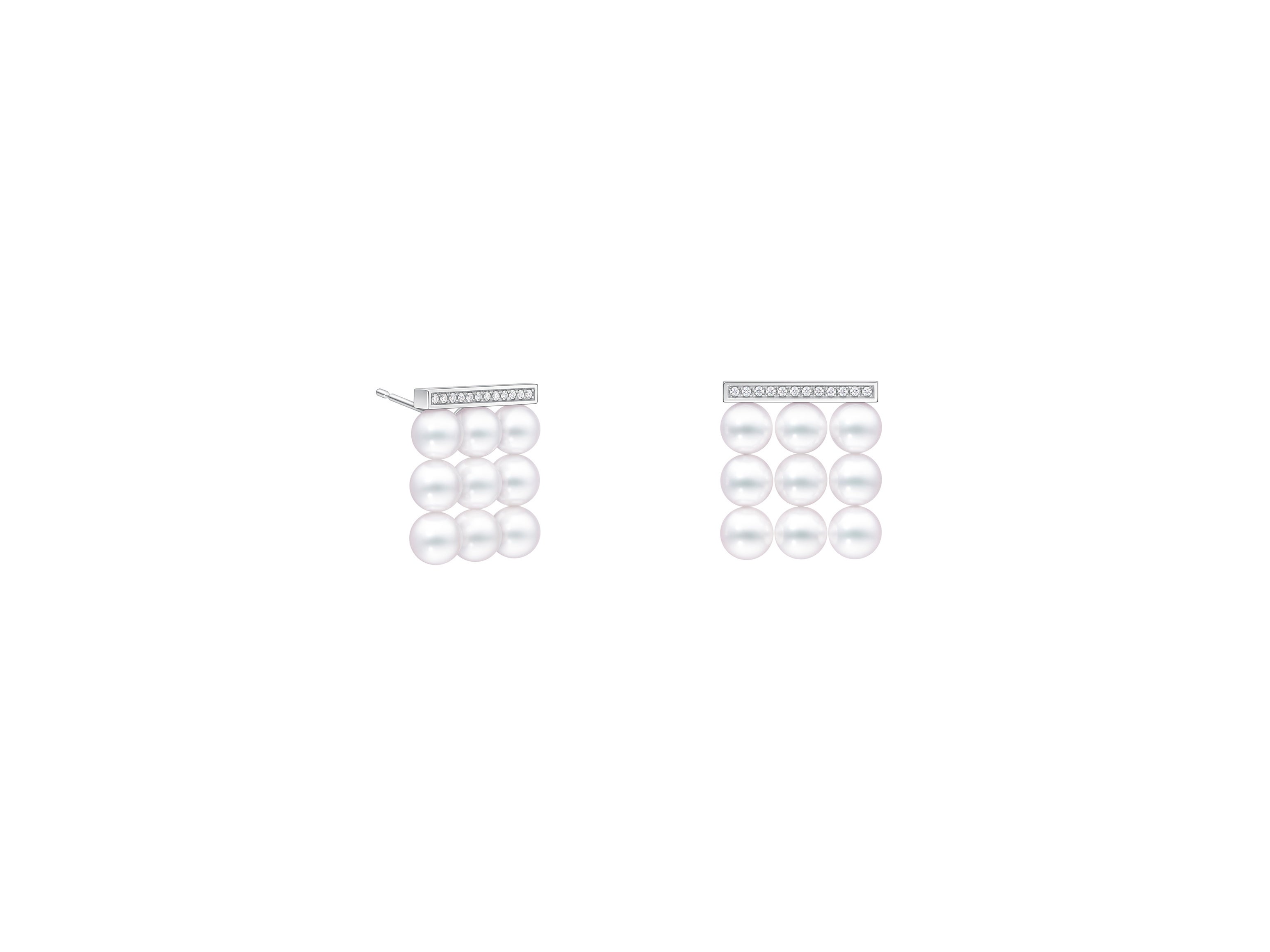 バランス ビルド ダイヤモンド パヴェ イヤリング[18K ホワイトゴールド、あこや真珠、ダイヤモンド]¥1,430,000