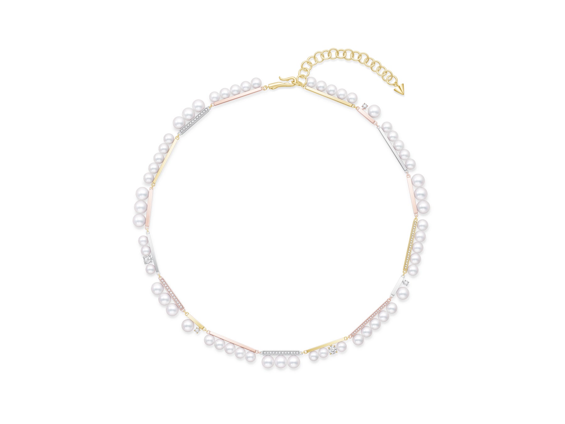 バランス エレメント ネックレス[18K SAKURAGOLD™、18K イエローゴールド、18K ホワイトゴールド、あこや真珠、ダイヤモンド]¥9,900,000