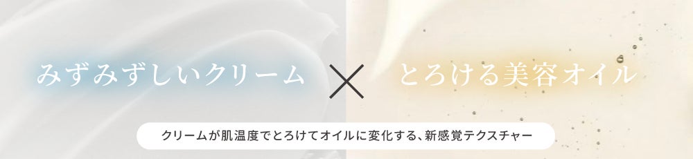 肌のキメをできるだけ壊さないよう、みずみずしいクリームと美容液オイルの最適比率を調整してつくった、摩擦レスなメルティテクスチャー。