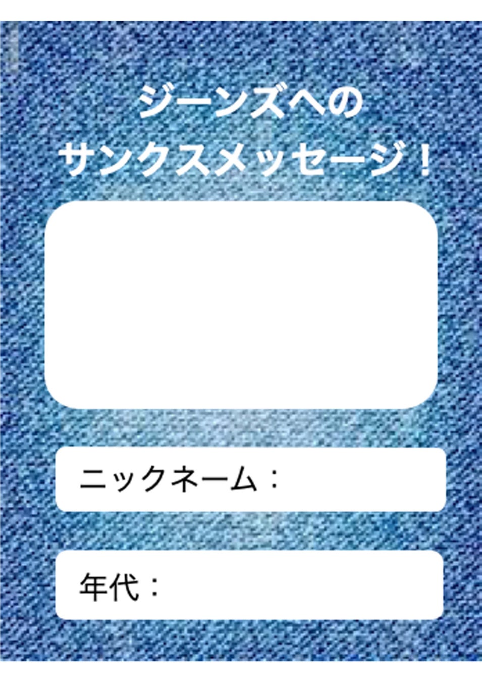 「つなごう、藍(あお)い糸プロジェクト」にて店舗へ履かなくなったジーンズをお持ち込み頂いたお客様へ、履かなくなったジーンズへの感謝のメッセージ、又はジーンズの思い出を記入お願いします。頂いた素敵なメッセージの一部は11月中旬~下旬ごろに、ライトオン公式Twitterにて、投稿させていただきます。