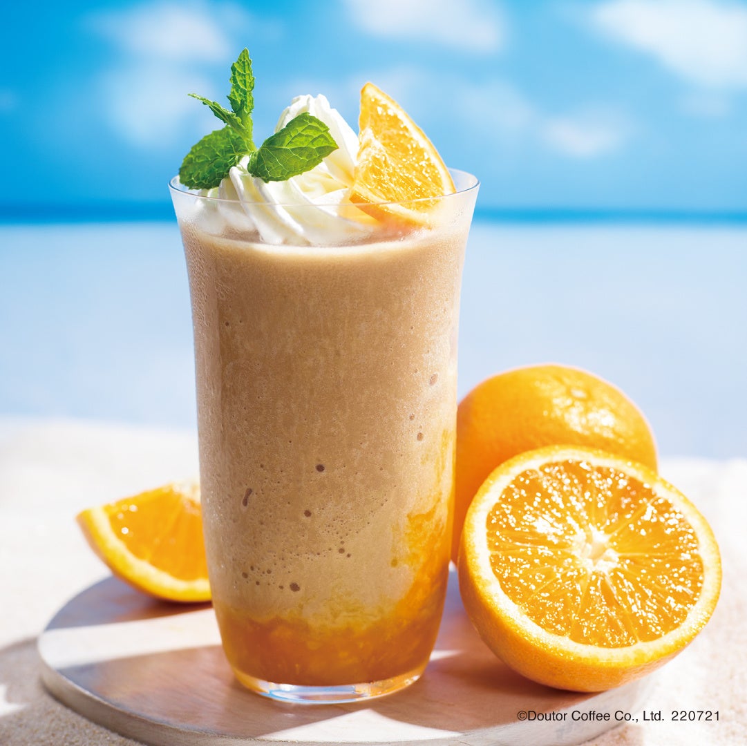 エスプレッソフローズンとともに、オレンジの甘い爽やかな香りとさっぱりとした味わいをお楽しみください。
