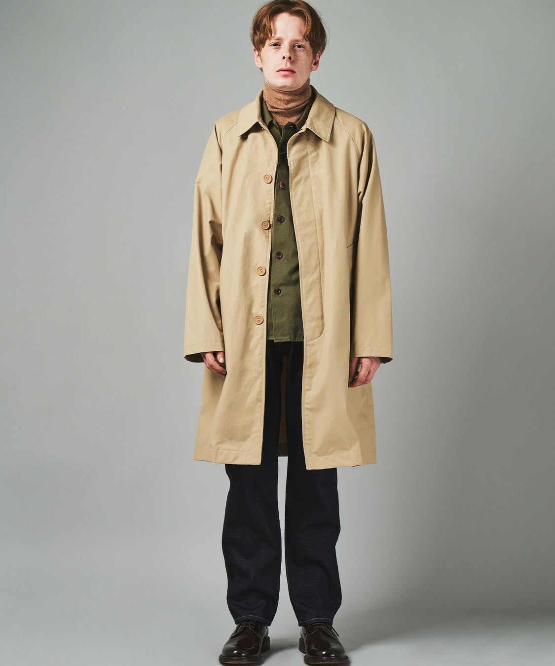 シンプルかつクラシックなメンズステンカラーコート。撥水加工が施された高密度のツイルの生地を採用。フロントは比翼仕様で、第一ボタン以外が隠れているのですっきりとした印象に。内側のデタッチャブルライナーは、小さいダイヤ柄パターンのキルティングで、薄くて軽い仕上がりです。ライナーが付いた状態でスーツの上から羽織っても着膨れしないサイズ感に設定。すっきりと見え、保温性も兼ね備えています。