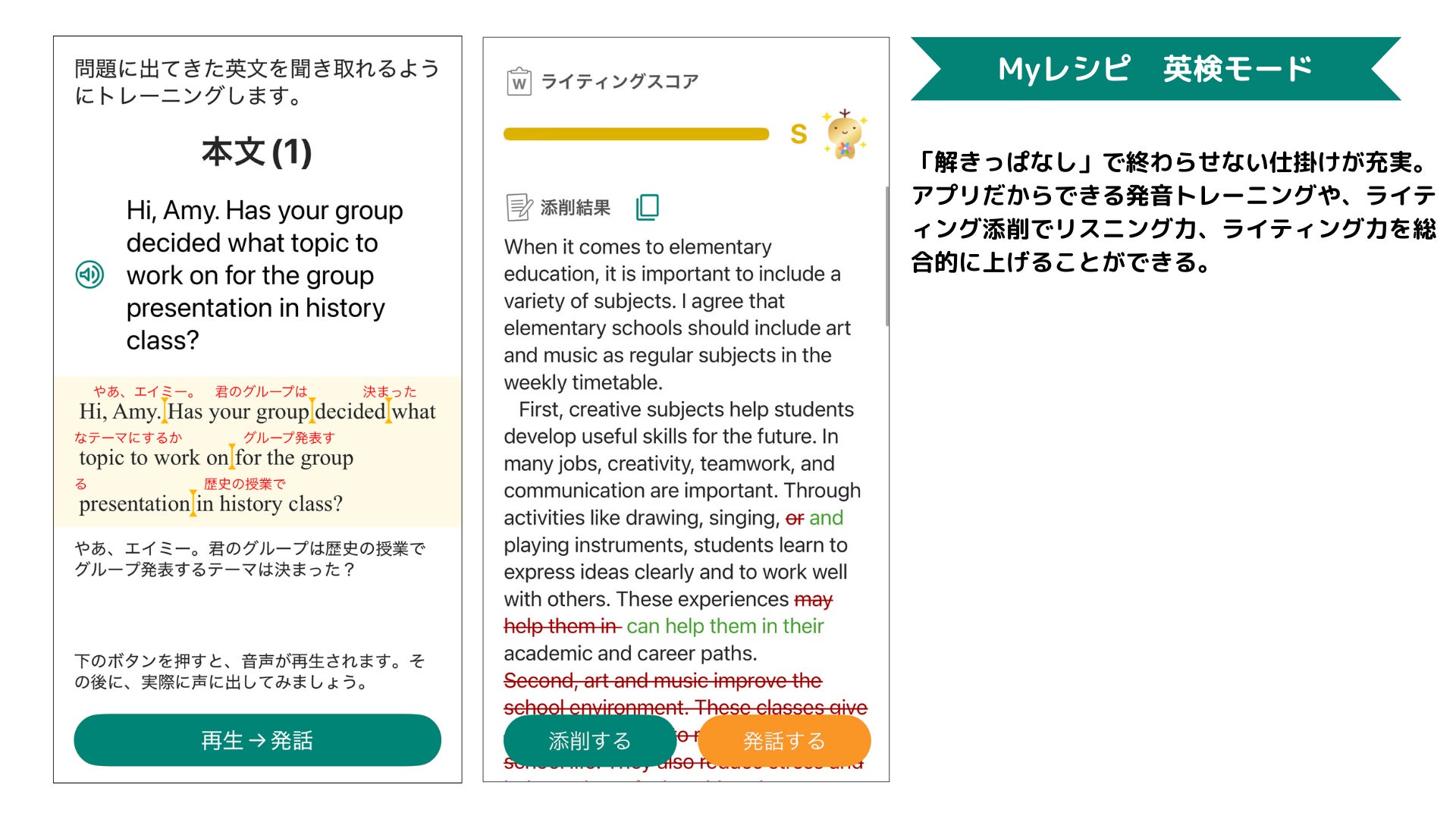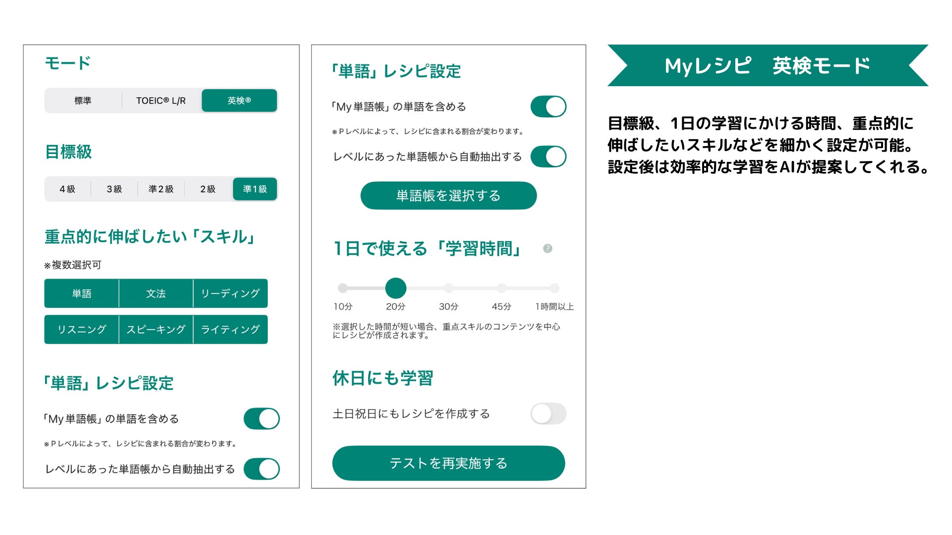 AI英語学習アプリ『レシピー』:学習者のレベルと目標に合わせて、毎日「英検対策」ができるモードを搭載
