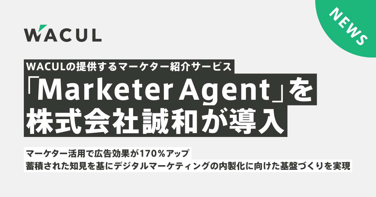 WACULが提供するマーケター紹介サービス「MarketerAgent」を株式会社誠和が導入