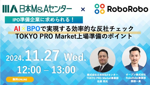 【11月27日(水)12:00スタート】 オープンと日本M&Aセンターが「AI×BPOで実現する効率的な反社チェック」をテーマにした無料セミナーを開催