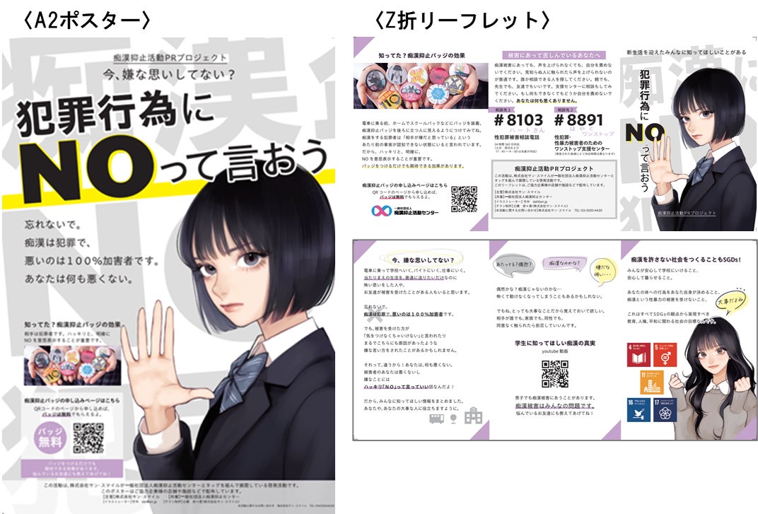 株式会社サン・スマイル(本社:東京都港区/代表取締役社長:田中徳也)は、一般社団法人痴漢抑止活動センター(代表理事:松永弥生)との共催企画として新学期開始後の4月28日(木)から2週間「痴漢抑止活動PRキャンペーン」を展開します。また、本企画には趣旨に賛同した「ドン・キホーテ」を展開する株式会社パン・パシフィック・インターナショナルホールディングス様、アパレルショップ「WEGO」を展開する株式会社ウィゴー様、また、Z世代に圧倒的人気を誇るWebマガジン「Emo!miu(エモミュ―)」や高校生マーケティングをと専門とする株式会社アイ・エヌ・ジー様が、各社のCSR活動の一環としてご参画いただきます。関東・関西の繁華街、ターミナル駅近隣にある店頭や施設内でのポスター、リーフレット設置にご協力いただきます。