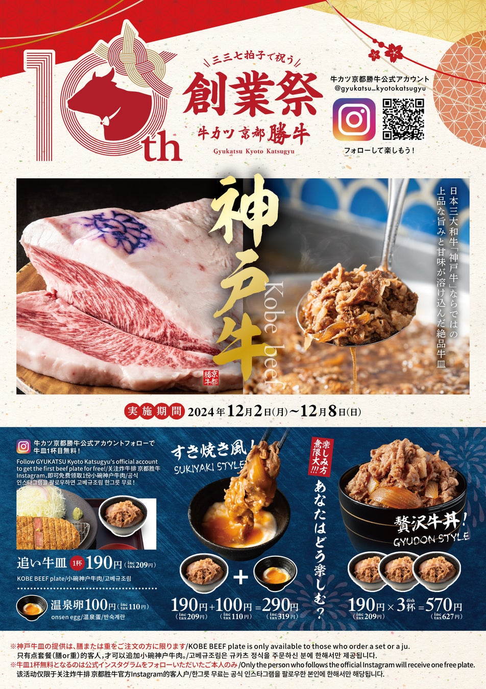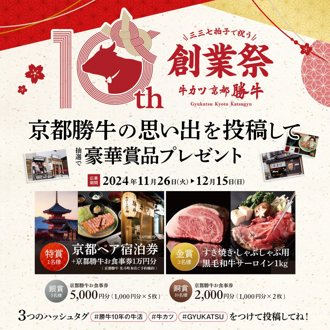 株式会社ゴリップ(本社:京都府京都市)が展開する「牛カツ京都勝牛」は、2024年11月26日より10周年創業祭を開催中。