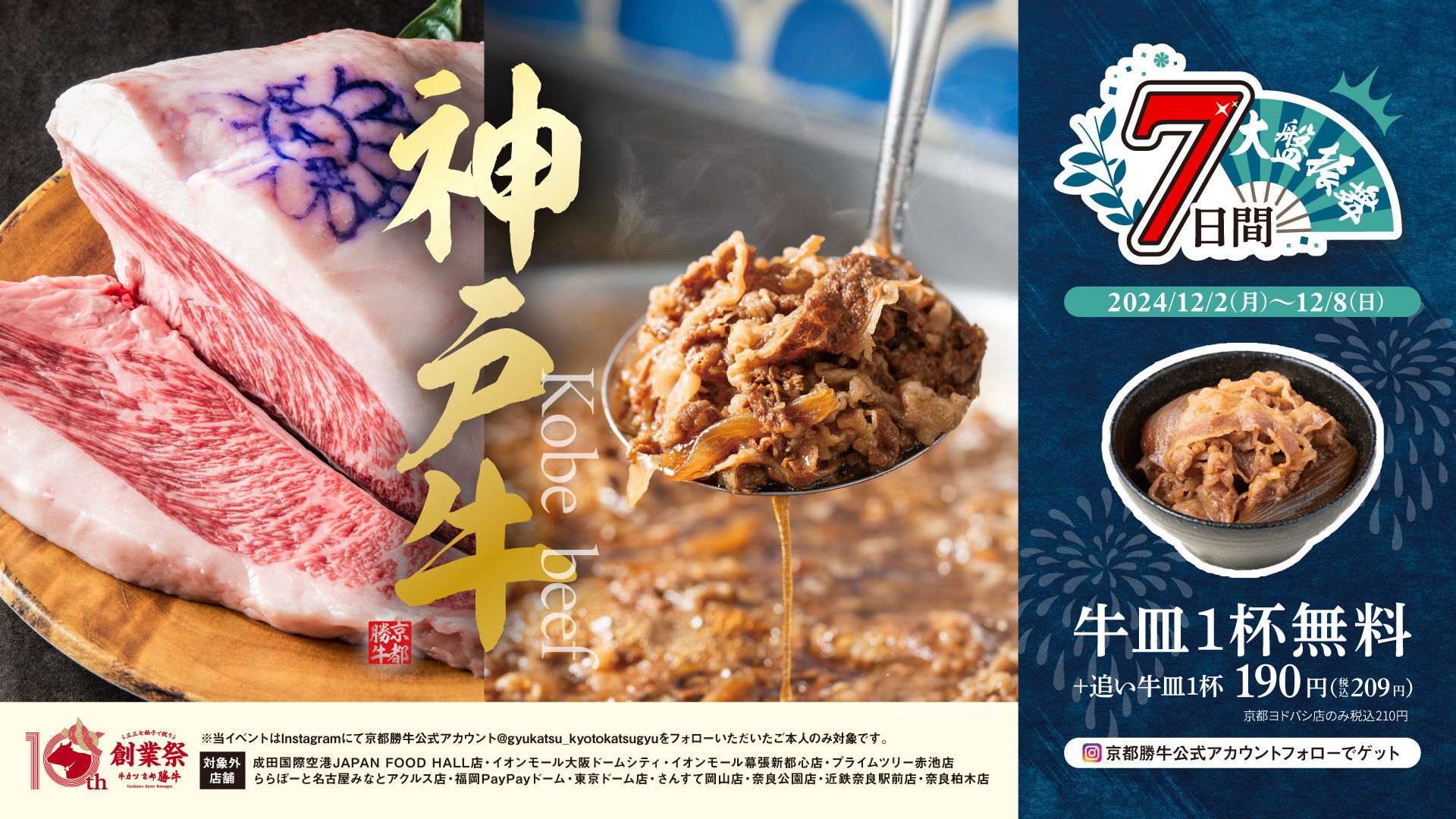 【牛カツ京都勝牛『10周年創業祭』第3弾】日本3大和牛を大盤振舞!12月2日(月)から7日間限定で「神戸牛100%牛皿」を一杯無料でご提供!