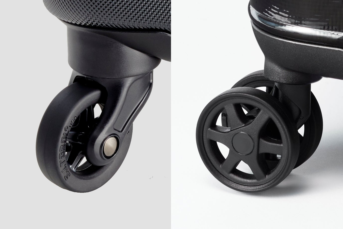 消費者がスーツケース購入時に重視する「軽さ」と「丈夫さ」を両立させるため、独自開発した新素材「クロスファイバー」をボディに初めて使用。自社製スーツケースに通常使用しているポリカーボネート/ ABS混合樹脂製ボディの重量と比較して40%以上軽量化したことで、ハンドルやキャスターの取り回しの滑らかさを損なわずに、ブランド史上最軽量となる機内持ち込みサイズ1.6kgを実現しました。
