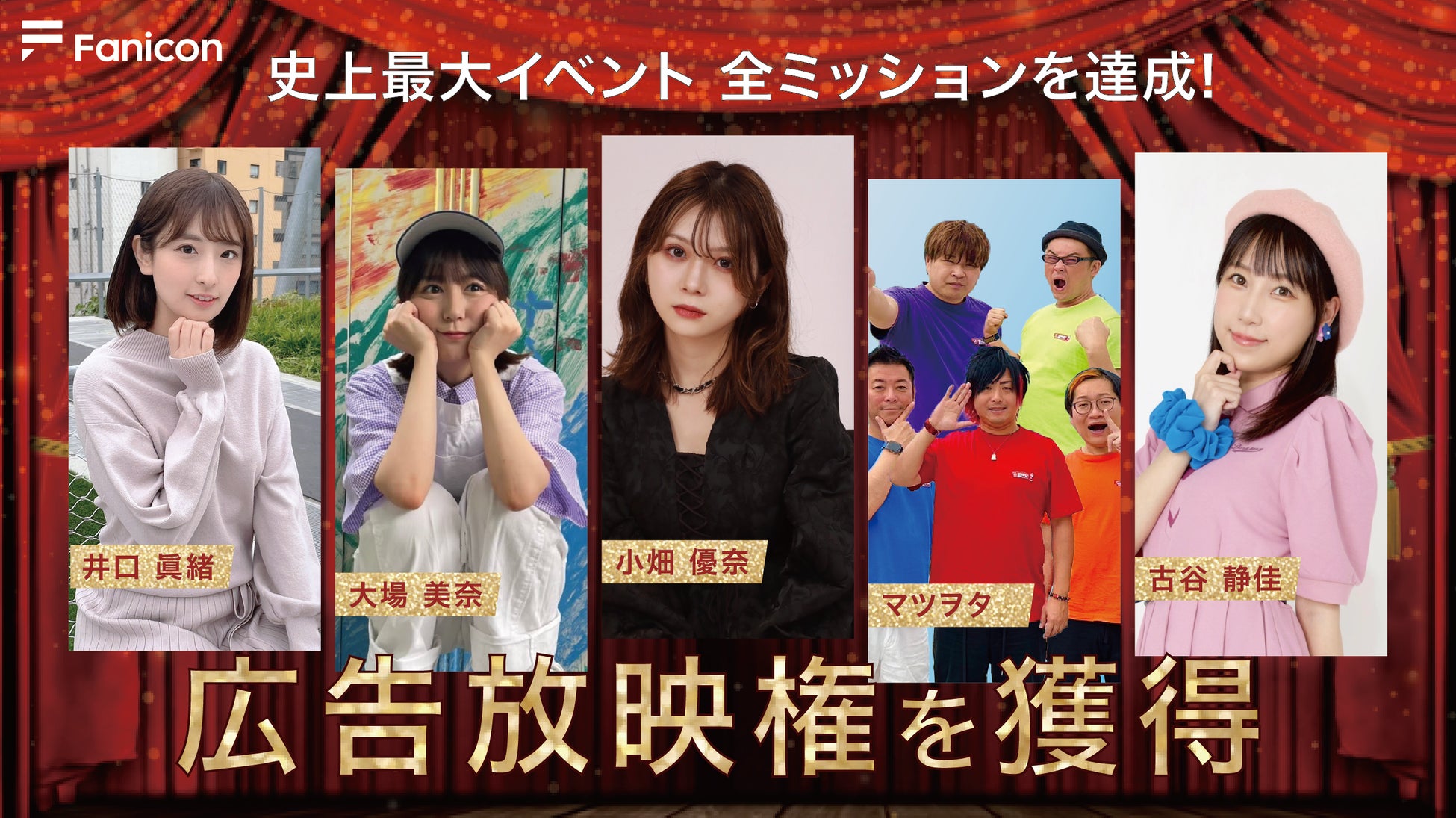 Fanicon史上最大イベント『ビジョン広告放映権を手に入れよう』結果発表!井口眞緒・大場美奈・小畑優奈・マツヲタ・古谷静佳のコミュニティが全ミッションを達成して見事、広告放映権を獲得