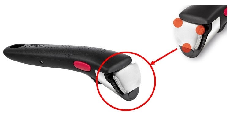 ティファール独自の3点固定システムでしっかりと取っ手を固定。安定感抜群の握り心地で、安心して調理ができます。また、片手でワンタッチ着脱が可能だから、調理中の取っ手の付け替えもラクラクです。