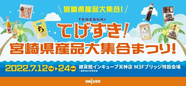 雑貨館インキューブ天神店では、2022年7月12日(火)~7月24(日)の期間「てげすき!宮崎県産品大集合まつり!」を開催いたします。