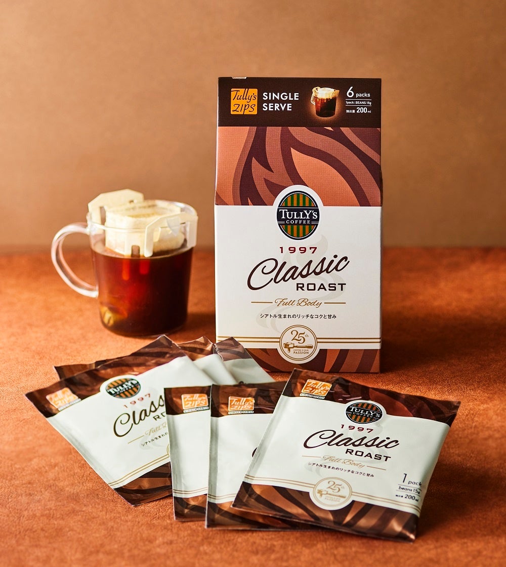 また、手軽に本格的な味わいを楽しんでいただけるよう、「タリーズジップス シングルサーブ 1997 クラシックロースト フルボディ」もご用意いたしました。ギフトとしてもぜひご利用ください。