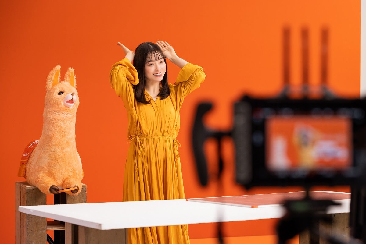 今回は私だけじゃなく、ブックラマちゃんとの共演なのですが、ラマちゃんがすごい触り心地もふわふわしてて。なんといってもあの動きがですね、本当に生命が宿っているかのような動きで、「ブックライブ!」って一緒に言うところがあるんですけど、ちゃんとパクパクパクッて(口が動いて)、「ライブ!」って、そう言ってるように見えるんですよね。それが可愛くて、撮影の合間もちょっと自分で動画を撮らせていただいたりしました。出来上がりもすごく良いので、ラマちゃんとの掛け合いも見どころなCMになっていると思います。