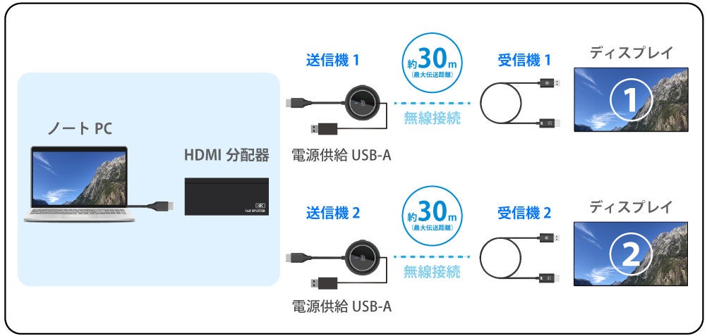 送信機2台+受信機1台のワイヤレスHDMI送受信機セット、直販サイトにて本日発売!PC2台から簡単ワイヤレス出力