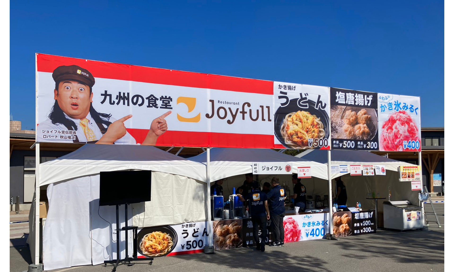 お天気にも恵まれ、3日間合計で約4,000名以上のお客様にお越しいただき、ジョイフルの定番かつ大人気メニューの「ジョイフル塩唐揚げ」や、こだわりの「かき氷」などをご賞味いただきました。