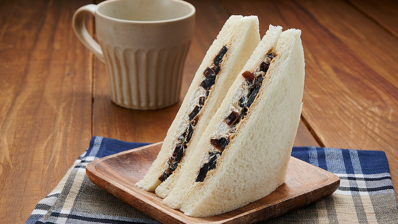 自家製のコーヒーゼリーにホイップをトッピングした、デザート系のサンドイッチです。