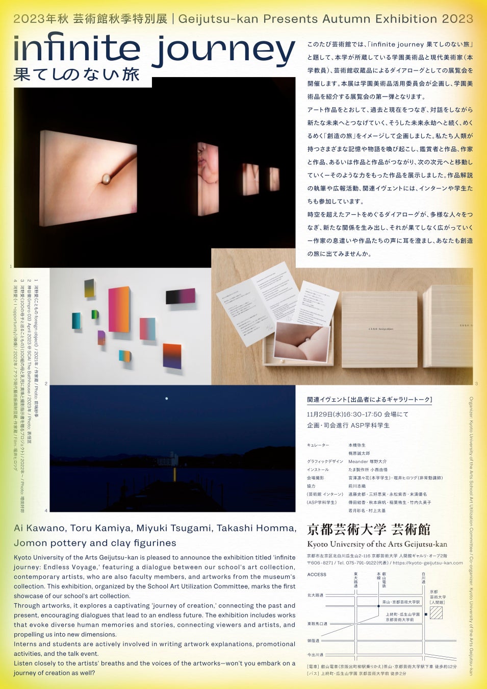 京都芸術大学・芸術館にて、秋季特別展 「infinite journey 果てしのない旅」明日スタート!12月2日(土)まで