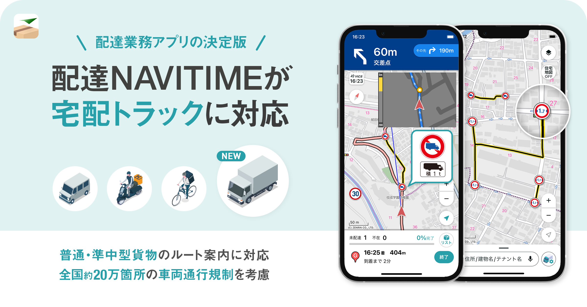 配達員の業務サポートアプリ『配達NAVITIME』が宅配トラックに対応!車高・車幅・車両別規制を考慮した案内が可能に