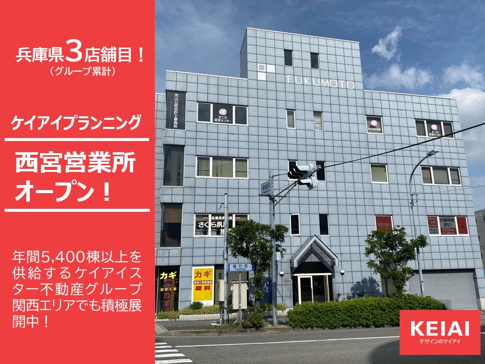 ケイアイスター不動産株式会社のグループ会社であるケイアイプランニング株式会社は、2022年7月1日に西宮営業所を開設しました。ケイアイプランニングは2021年5月に兵庫県初となる神戸営業所を開設しており、初出店から1年余りで兵庫県内3店舗目の開設となりました。