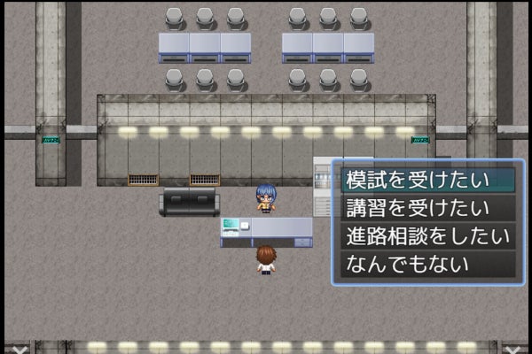ゲーム内では、河合塾の学問・大学選び支援サイト「みらいぶっく」を元にした興味・関心診断で、キャラクターの適性タイプを決定。その後、Kei-Netでの入試科目検索やオープンキャンパス、先輩との交流を通じて進路情報を収集しながら、河合塾の模試や講習で学力を伸ばしていきます。最後に、選んだ志望校に出願して筆記試験と面接に挑みます。プレイヤーの行動によって結果が変わるマルチエンディング方式で、受験に向けた準備の大切さを実感できる内容です。