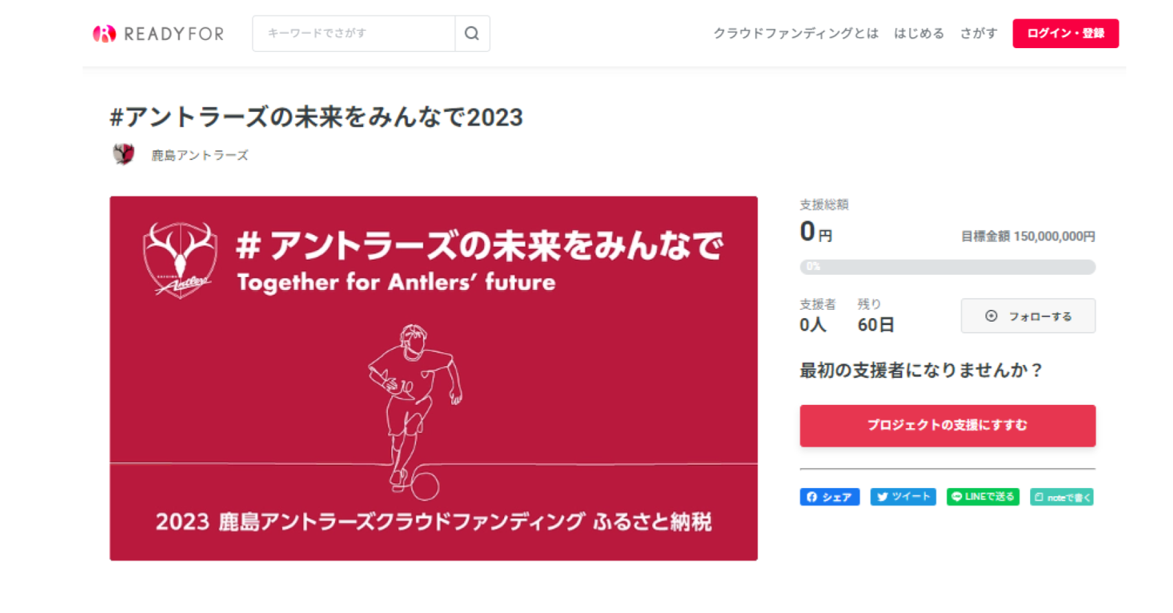 「READYFOR」にて、行方市×鹿島アントラーズが、1.5億円を目標にふるさと納税型クラウドファンディングを開始!