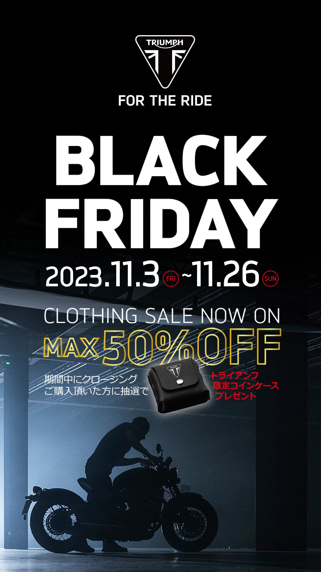 トライアンフから「CLOTHING BLACK FRIDAY開催」のお知らせ