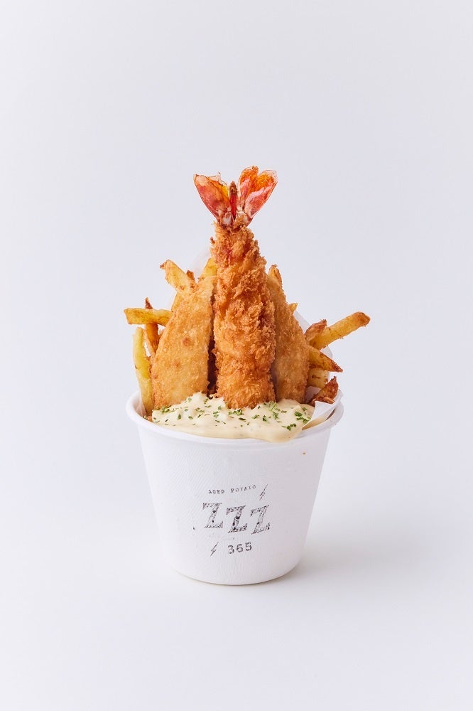 zzz365の一番人気、ディープソルトに白身魚のフライをトッピングしたフィッシュアンドチップスにインパクト抜群のエビフライを乗せ、タルタルソースを添えた、フェア※1 限定のコラボメニューです。