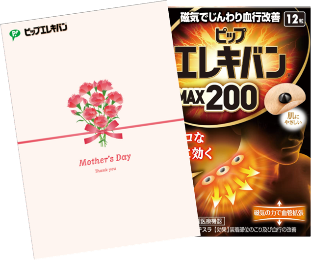 ピップより母の日のプレゼント仕様の「母の日ギフト ピップエレキバンMAX200 12粒」を4月25日(火)よりピップ ウエルネス通販にて販売開始