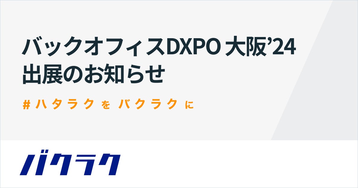 この度、関西エリアの方々にバクラクのことをもっと知っていただきたく、管理部門の業務効率化・DX推進のための展示会である「第2回 バックオフィスDXPO 大阪’24」に出展する運びとなりました。